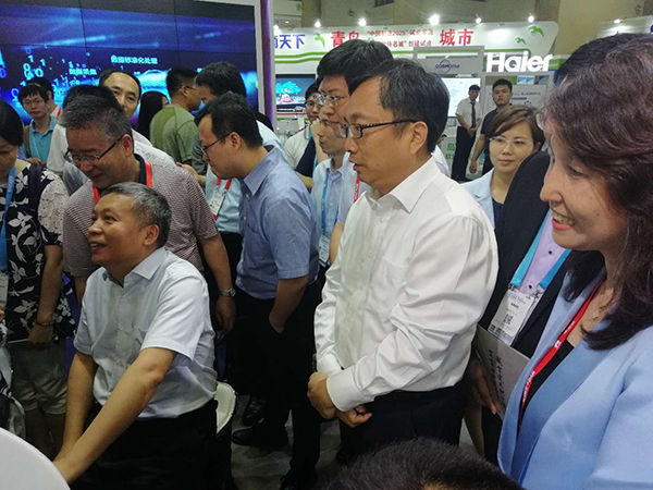 董事長王聯向工信部副部長張克勤介紹公司的中醫綜合診斷系統,中醫醫聯體及中醫機器人在全國基層醫療和養老方面的應用情況。